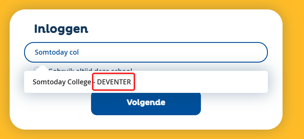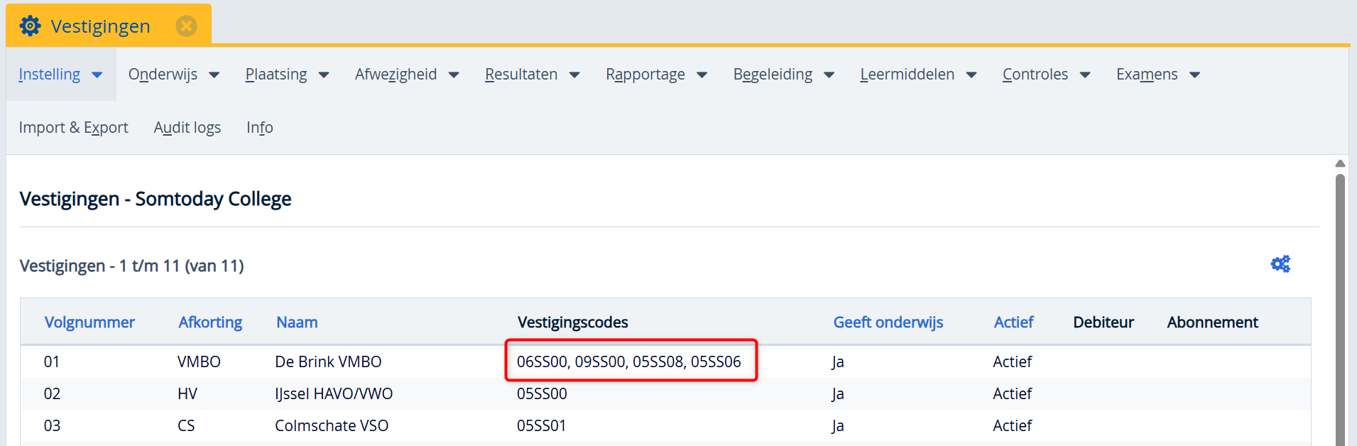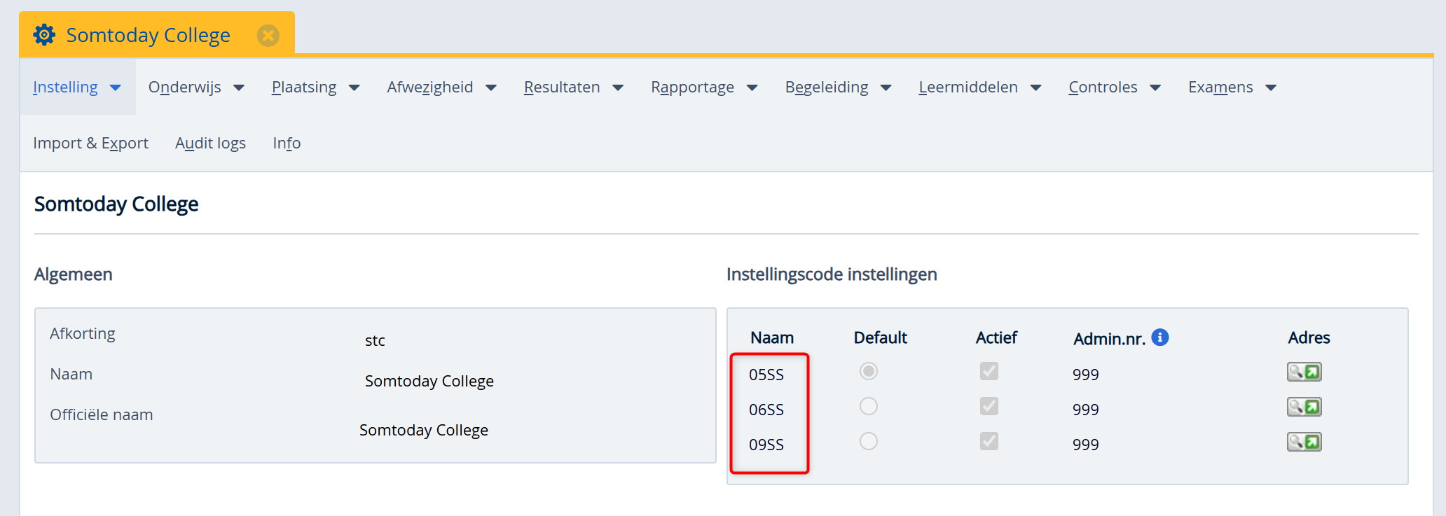 Voorbeeld: hierboven zie je 3 verschillende instellingscodes binnen één Somtoday omgeving.