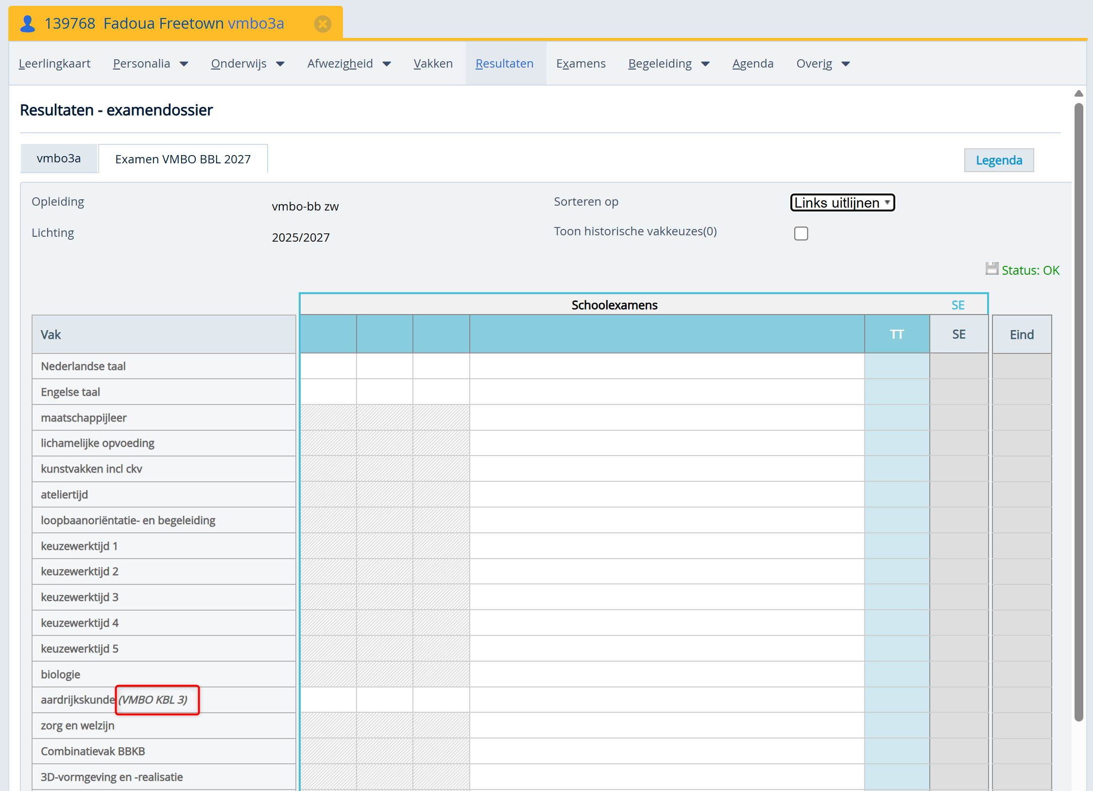 Leerlingen > kies leerling > Vakken