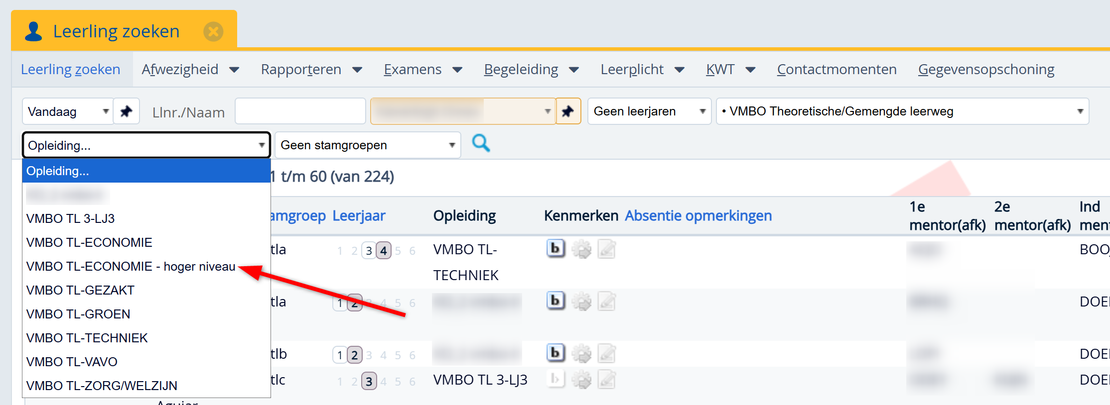 - Zet de leerling in de juiste lesgroep