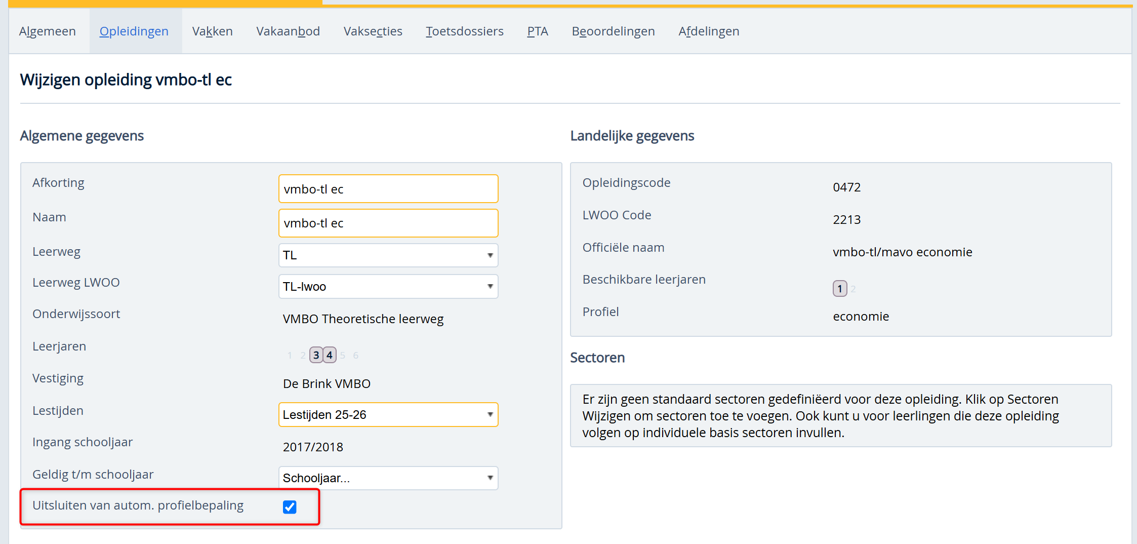 Dit voorkomt dat Somtoday op de vakkenkaart van andere vmbo leerlingen probeert hun vakken te matchen aan deze opleiding, dat is het bepalen van afgeleide profielen