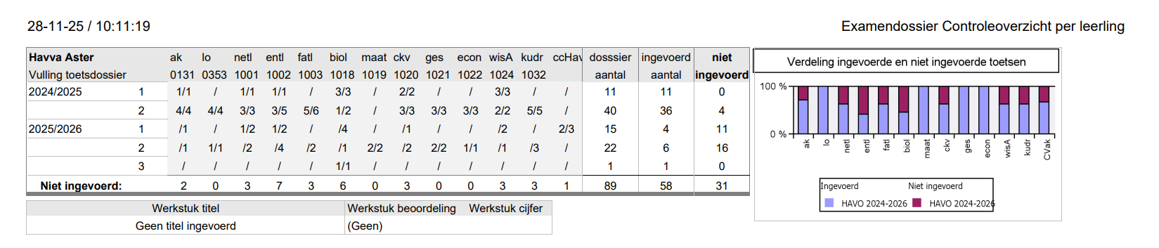 Leerling overzicht examendossier toetsen, gedetailleerd