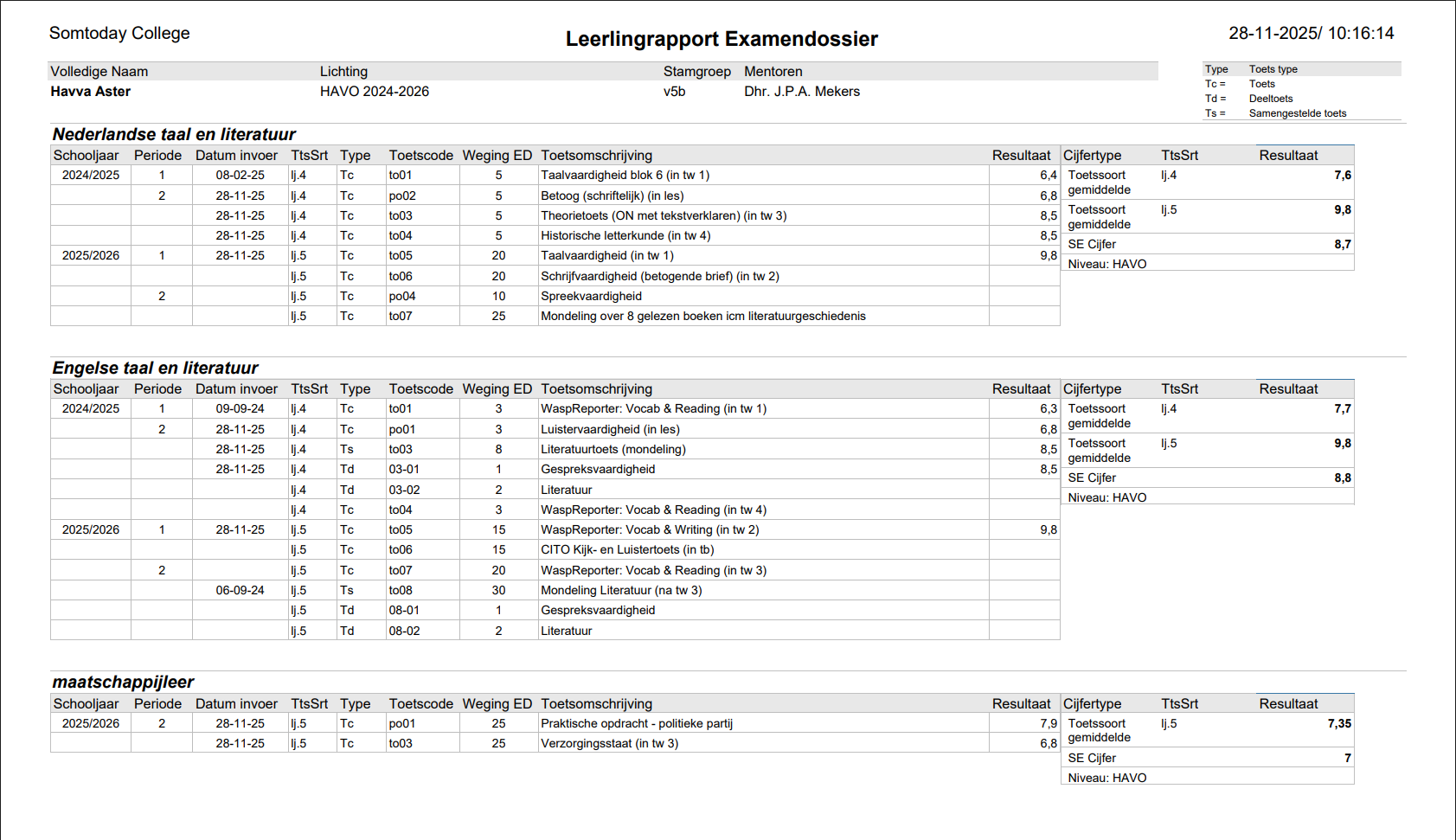 Rapportnaam: Leerling_Leerlingrapport Examendossier