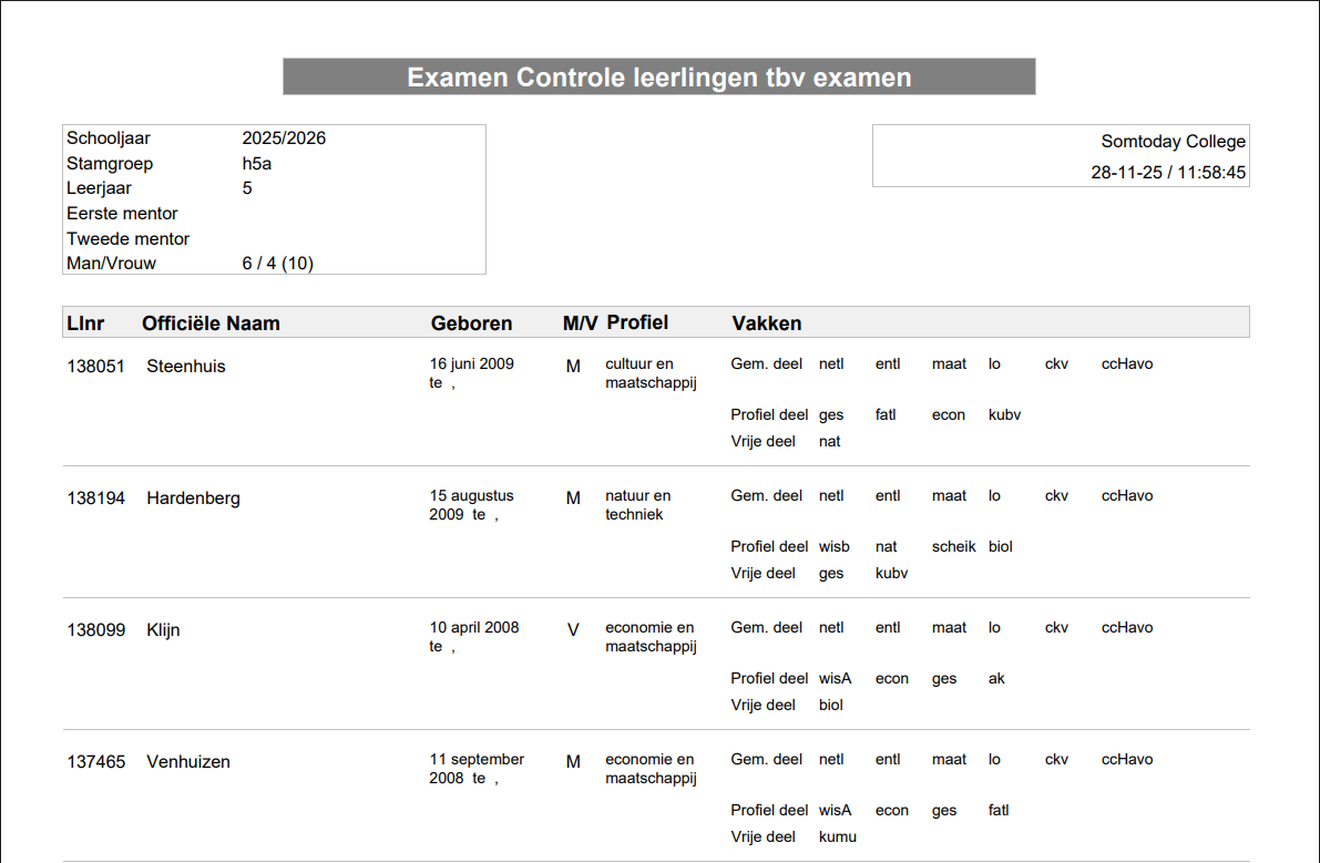 Rapportnaam: Leerling_Examen Controle leerlingen tbv examen