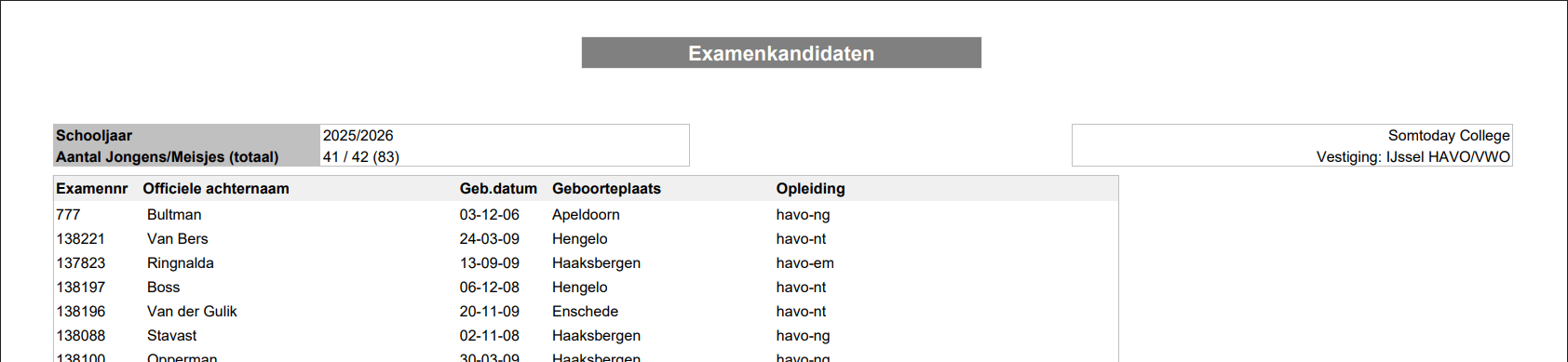 Rapportnaam: Leerling_Examenkandidatenlijst
