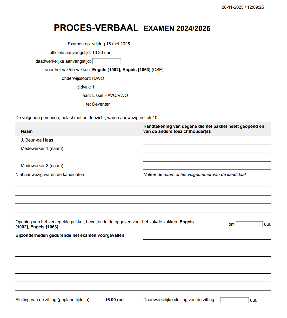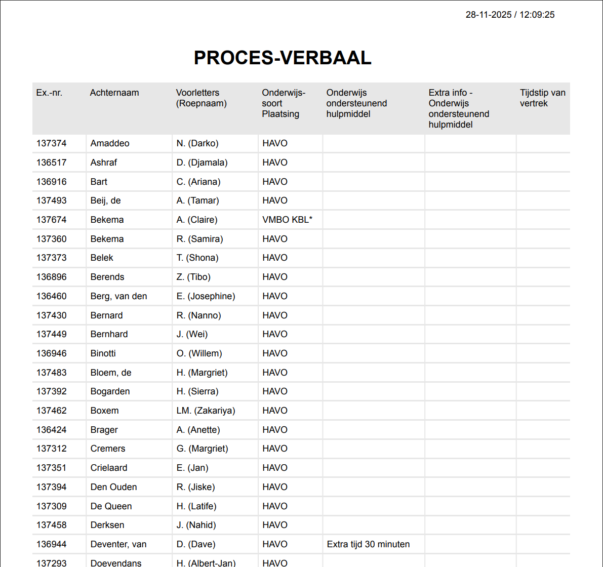 Rapportnaam: Afspraak_Procesverbaal vanuit examenplanner