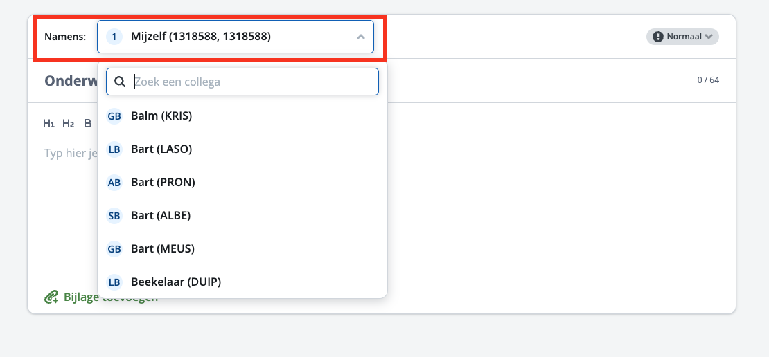 Wanneer je hiervoor de rechten hebt dan kun je namens een andere collega een nieuwsbericht publiceren. Bij het opstellen van een nieuwsbericht staat er bovenaan een menu om te kiezen namens wie je een nieuwsbericht wil publiceren. Handig wanneer je de communicatie vanuit een centraal punt wil coördineren.