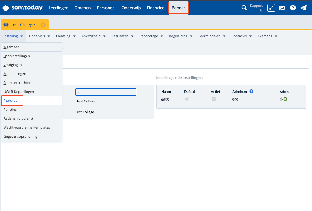 Als vereiste zal het Somtoday Connect Feature aangezet moeten worden voor de Instelling.