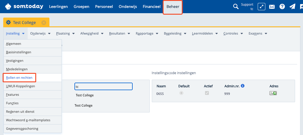 hiervoor naar Beheer -> Instelling -> Rollen en Rechten
