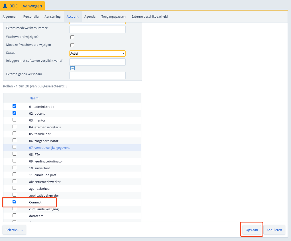 In het ‘wijzigen’-scherm configureer je onder ‘Rollen’ het zojuist aangemaakte rol voor