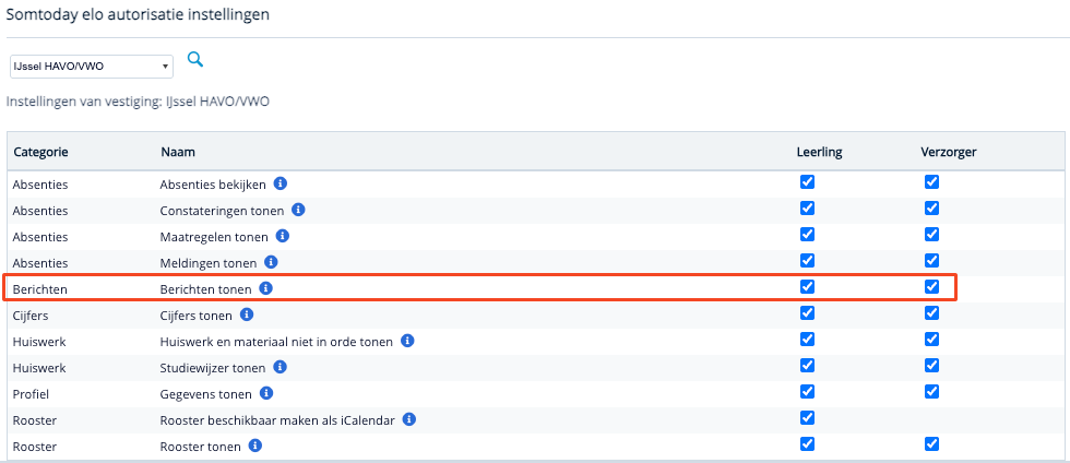 Voor de verzorgers moet in Somtoday Leerling & Ouder de functionaliteit voor Berichten beschikbaar zijn. Dit doe je onder Beheer > Instelling > Features > Somtoday Leerling & Ouder wijzigen.
