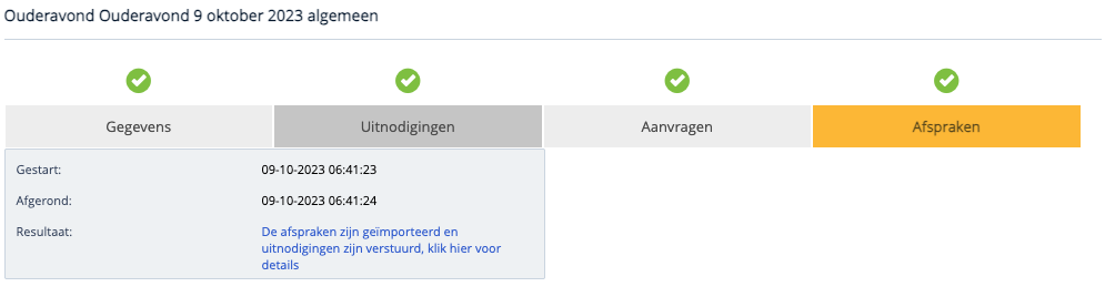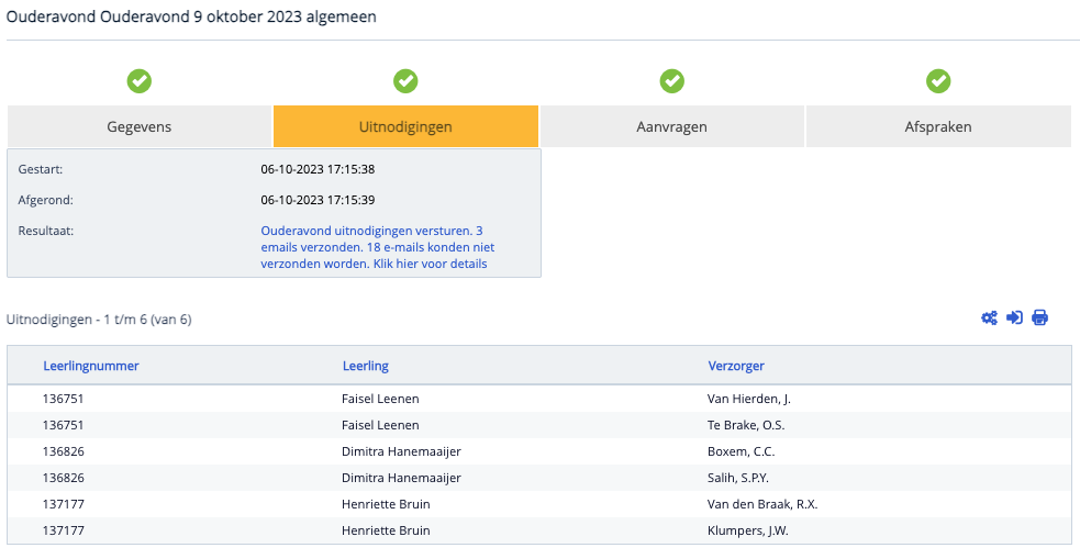 Let op: Somtoday toont het resultaten van het versturen van de uitnodigingen. Controleer of er ouders zijn die onverhoopt geen uitnodiging hebben ontvangen