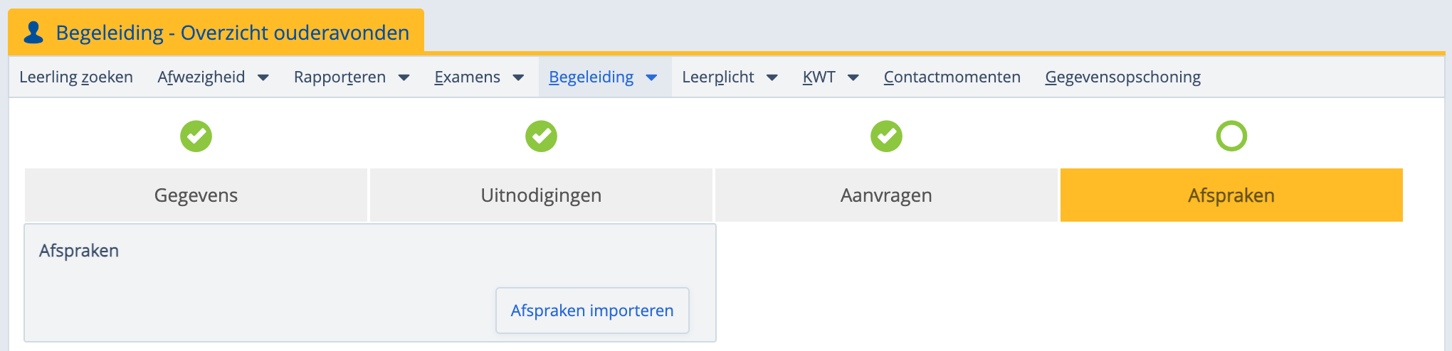 Wacht daarom zo lang mogelijk met het importeren van de afspraken in Somtoday. - Van aanvragen voor gesprekken die niet kunnen worden ingepland vindt geen communicatie plaats naar de verzorger.
