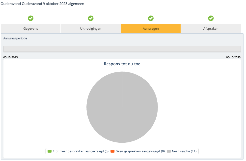 - Aanvragen: hier wordt in een cirkeldiagram getoond hoe het intekenen verloopt. Dit is ook zichtbaar in Zermelo.